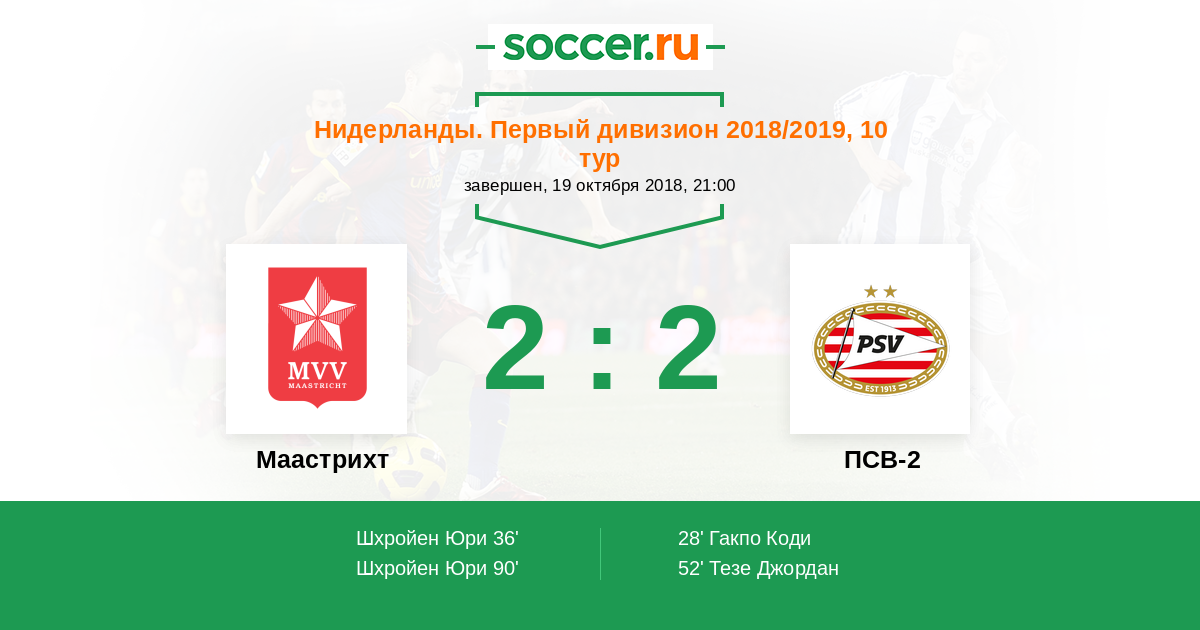 Протокол матча Маастрихт против ПСВ-2