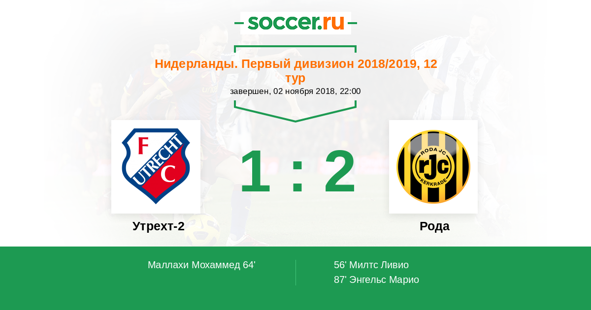 Протокол матча Утрехт-2 против Рода