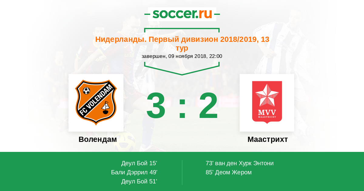 Протокол матча Волендам против Маастрихт