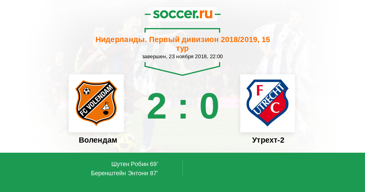 Протокол матча Волендам против Утрехт-2