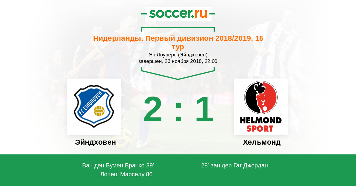 Протокол матча Эйндховен против Хельмонд