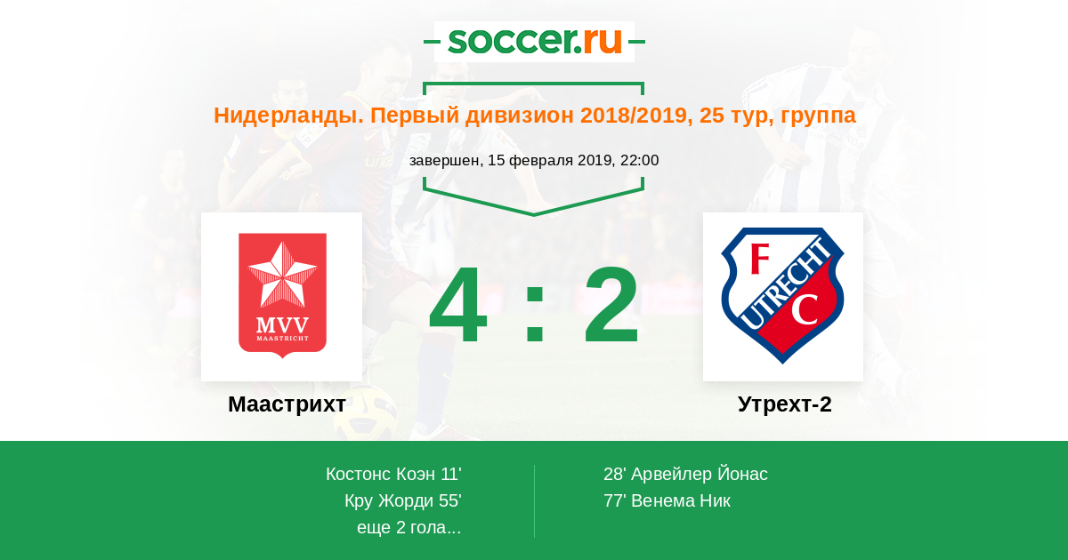 Протокол матча Маастрихт против Утрехт-2