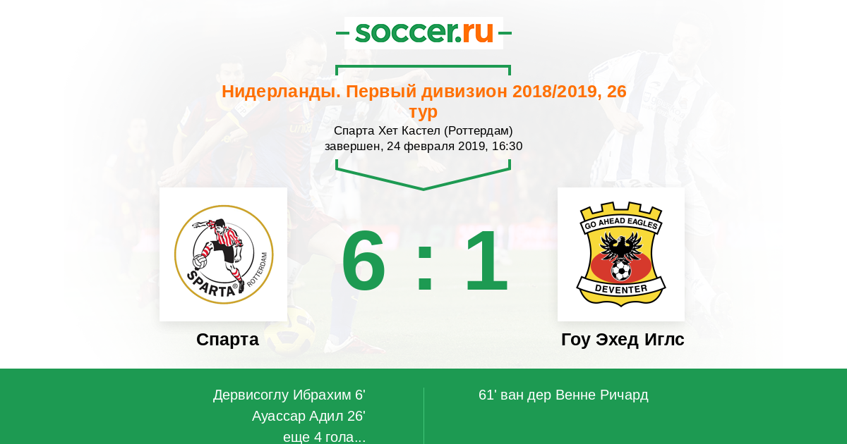 Протокол матча Спарта против Гоу Эхед Иглс