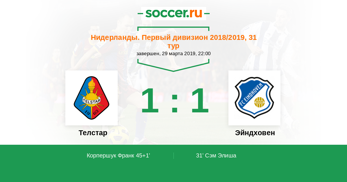 Протокол матча Телстар против Эйндховен
