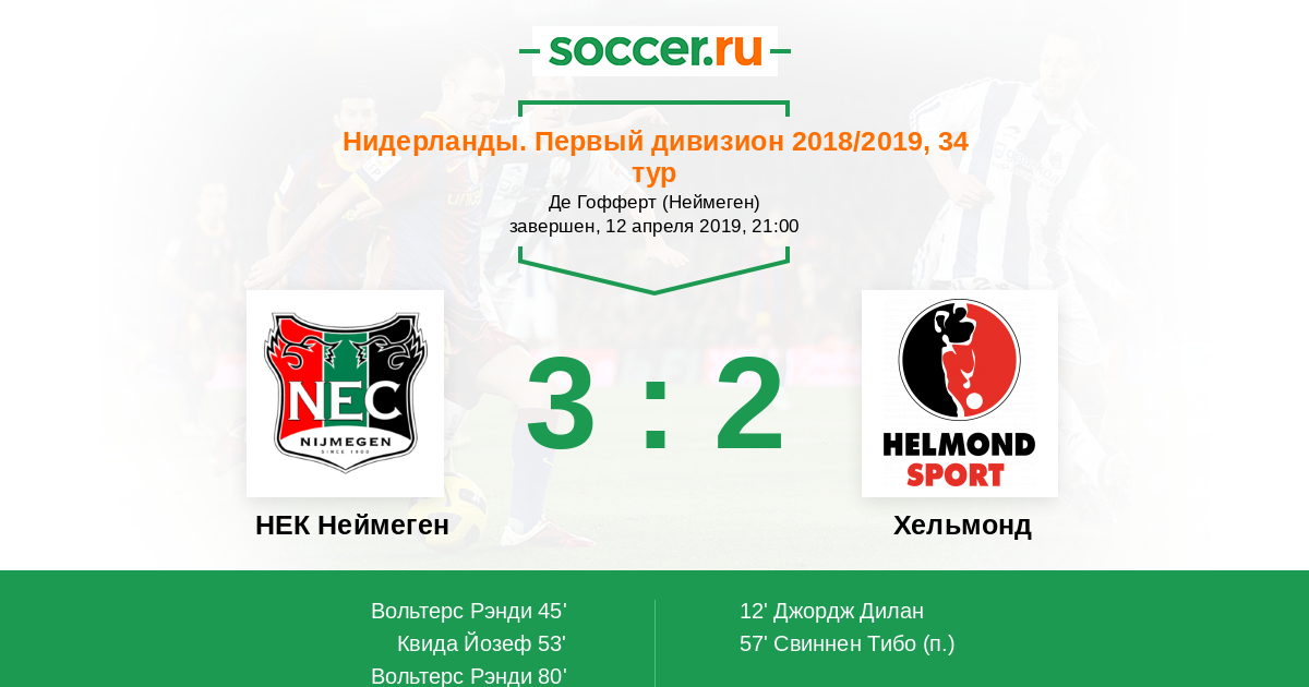 45' (1:1) Вольтерс Рэнди (11) (Брюйн Жорди (7))