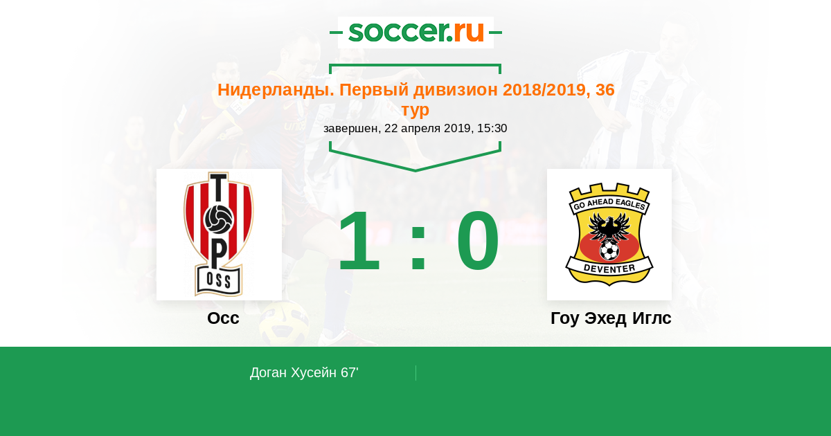 Протокол матча Осс против Гоу Эхед Иглс