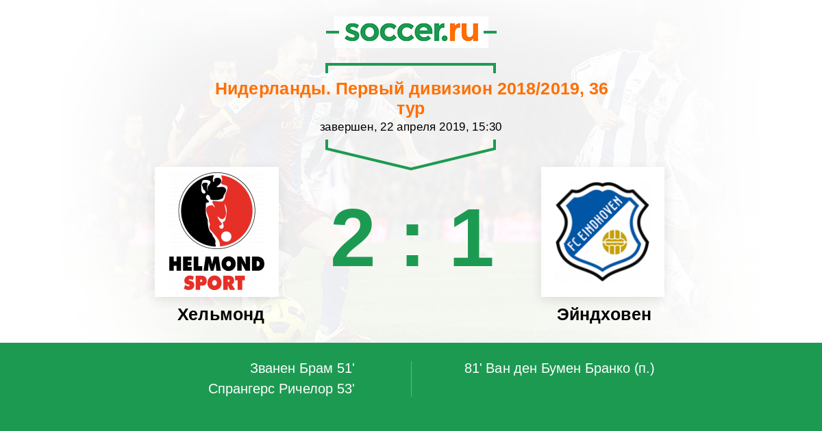 Протокол матча Хельмонд против Эйндховен
