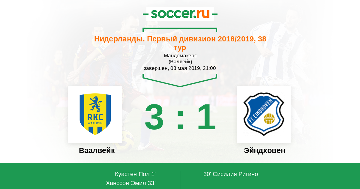 1' (1:0) Куастен Пол (5) (Риенстра Даан (6))
