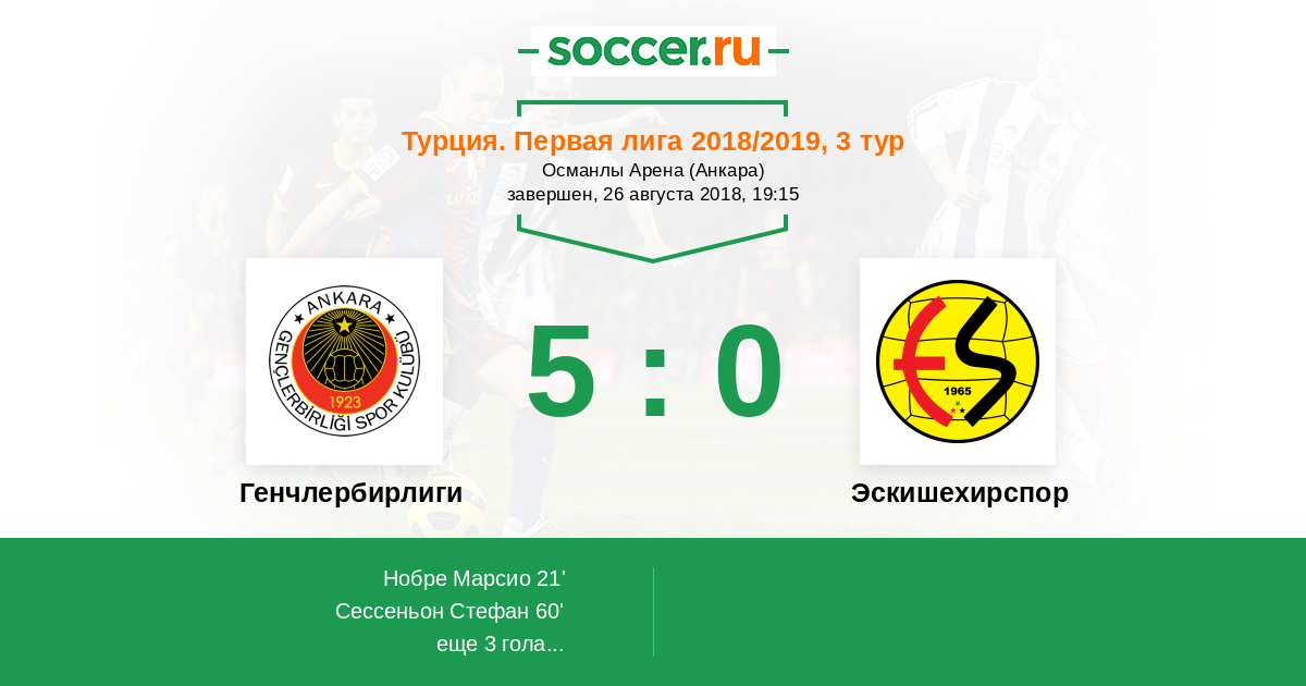 Протокол матча Генчлербирлиги против Эскишехирспор