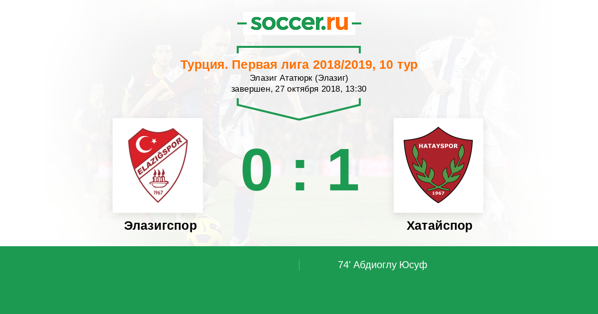 Протокол матча Элазигспор против Хатайспор