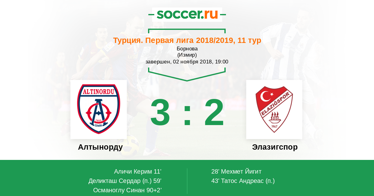 Протокол матча Алтынорду против Элазигспор
