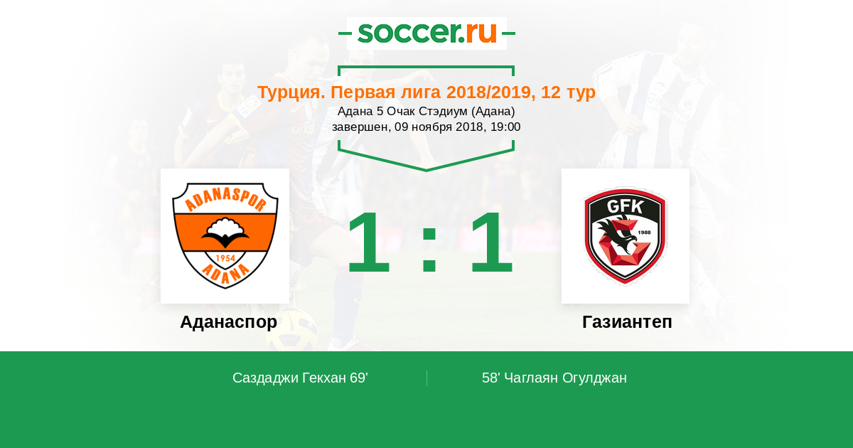 Протокол матча Аданаспор против Газиантеп