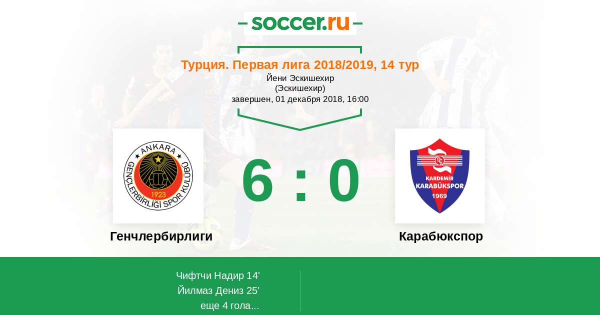 25' (2:0) Йилмаз Дениз (18) (Пехливан Ясин (6))
