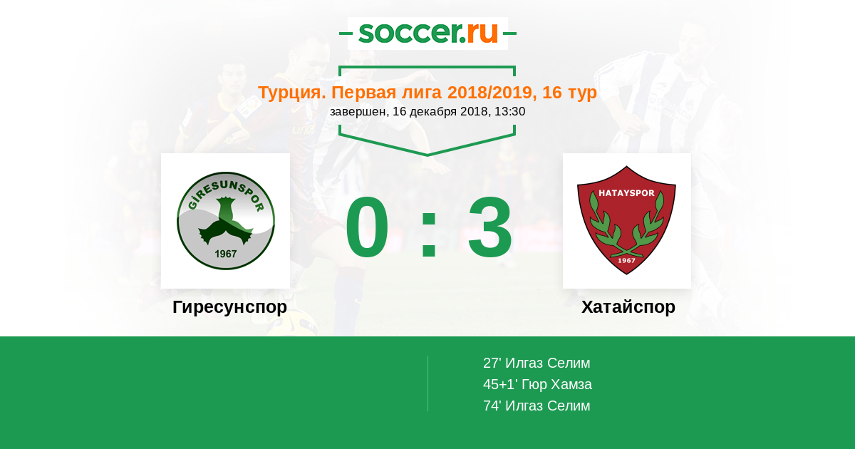 Протокол матча Гиресунспор против Хатайспор