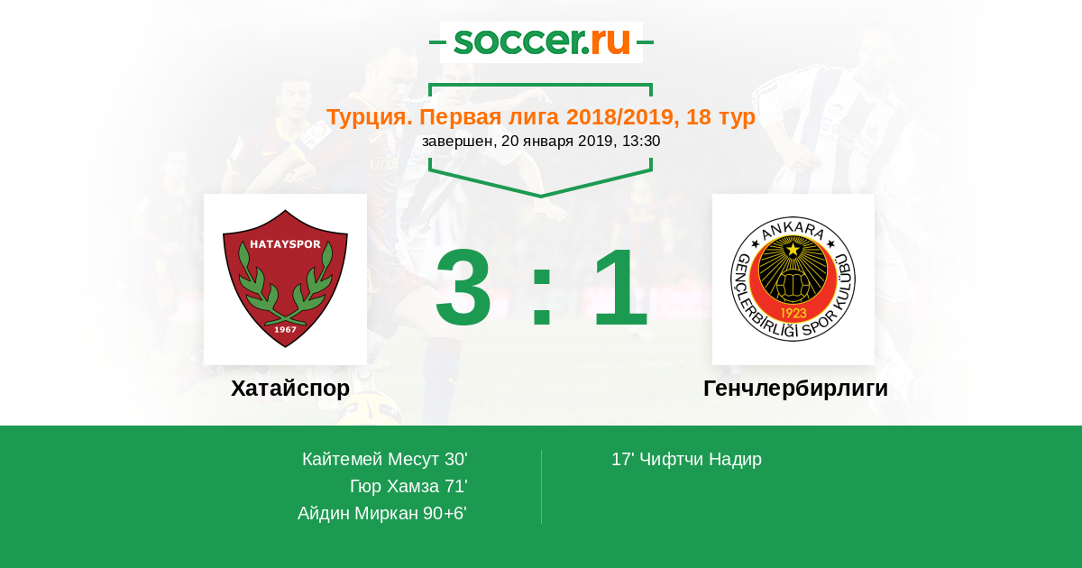 Протокол матча Хатайспор против Генчлербирлиги