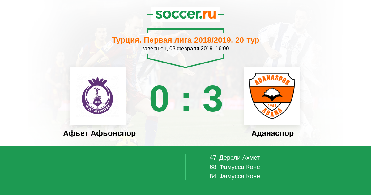 Протокол матча Афьет Афьонспор против Аданаспор