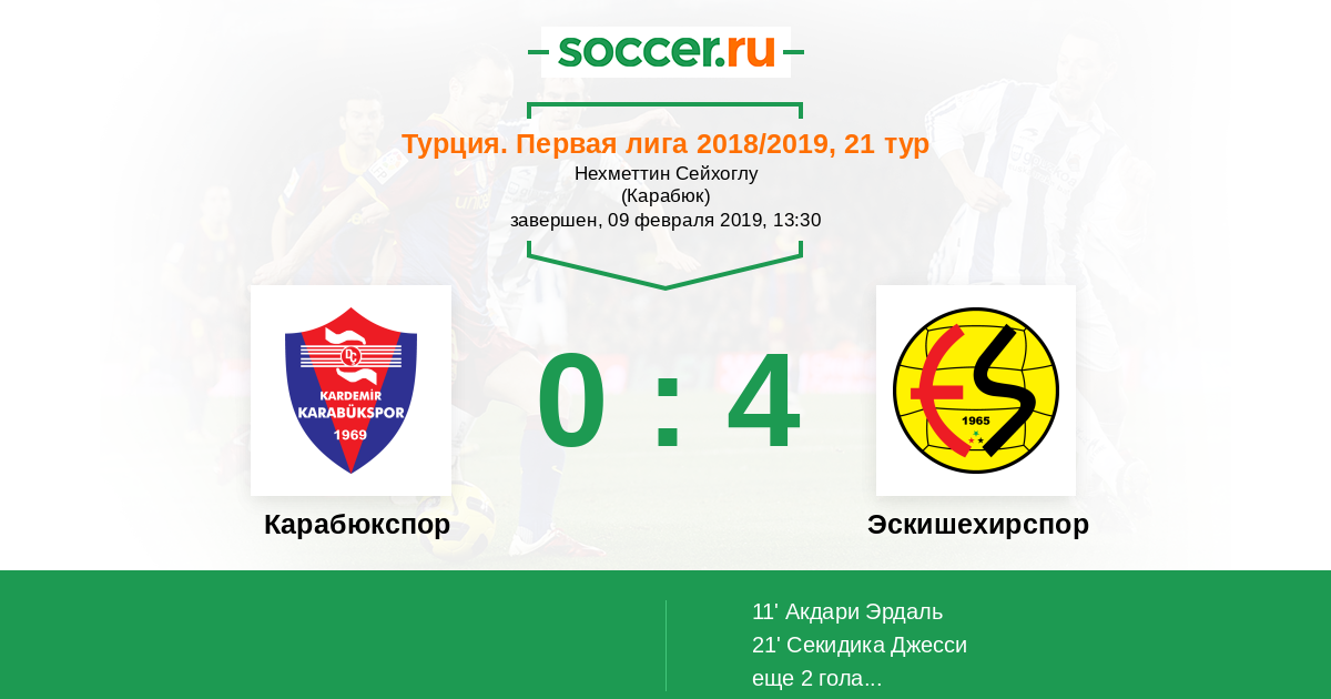 11' (0:1) Акдари Эрдаль (21) (Сиссоко Ибрахима (3))