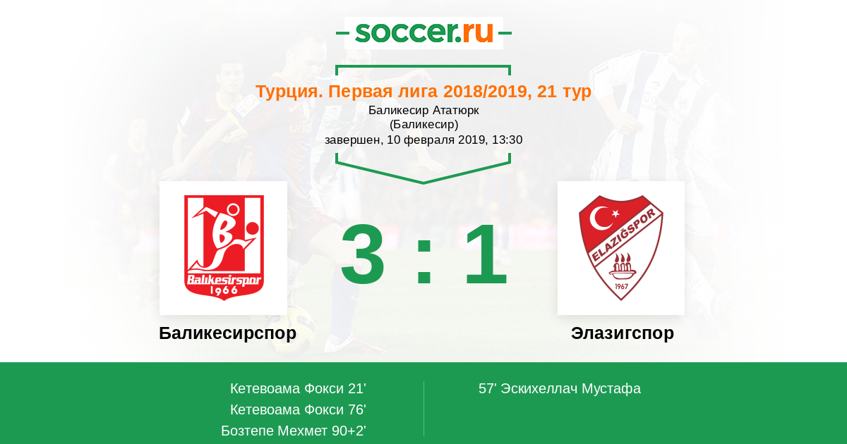 Протокол матча Баликесирспор против Элазигспор