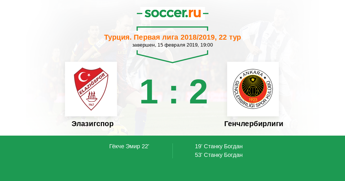 Протокол матча Элазигспор против Генчлербирлиги