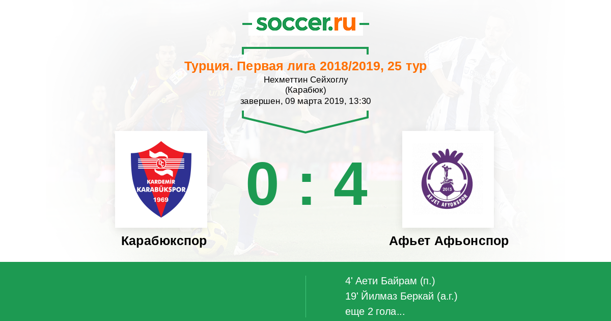 19' (0:2) Автогол Йилмаз Беркай (20)