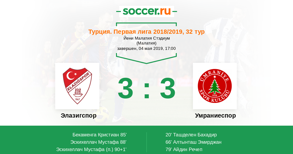 Протокол матча Элазигспор против Умраниеспор