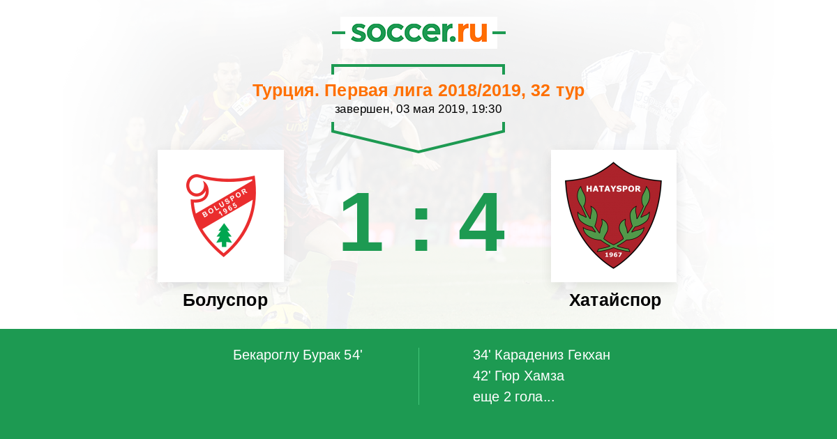 Протокол матча Болуспор против Хатайспор