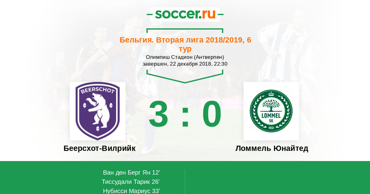 Протокол матча Беерсхот-Вилрийк против Ломмель Юнайтед