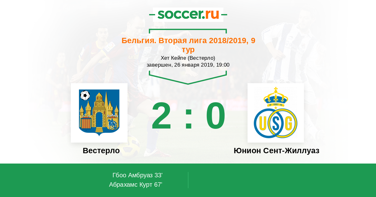 Протокол матча Вестерло против Юнион Сент-Жиллуаз