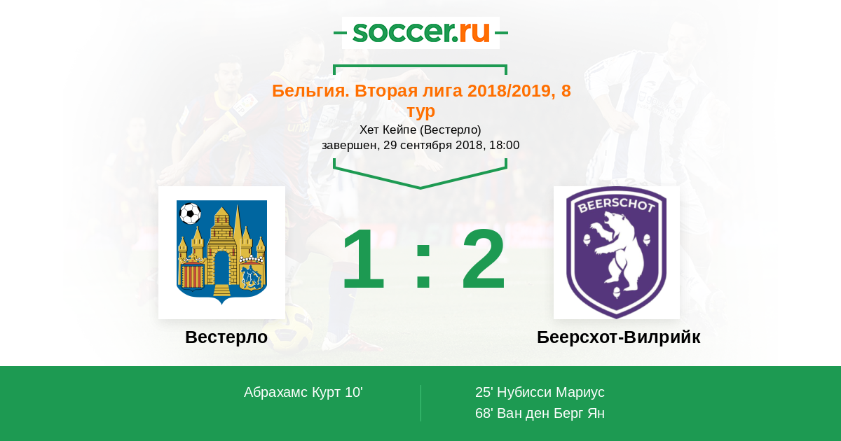 Протокол матча Вестерло против Беерсхот-Вилрийк