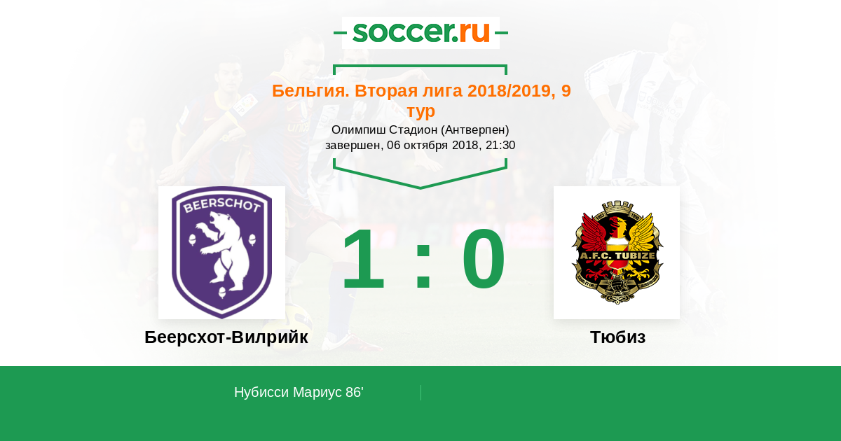 Протокол матча Беерсхот-Вилрийк против Тюбиз