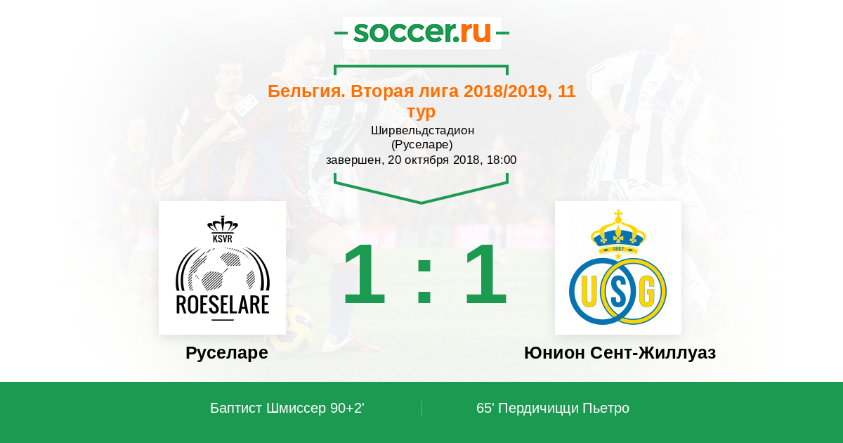 Протокол матча Руселаре против Юнион Сент-Жиллуаз