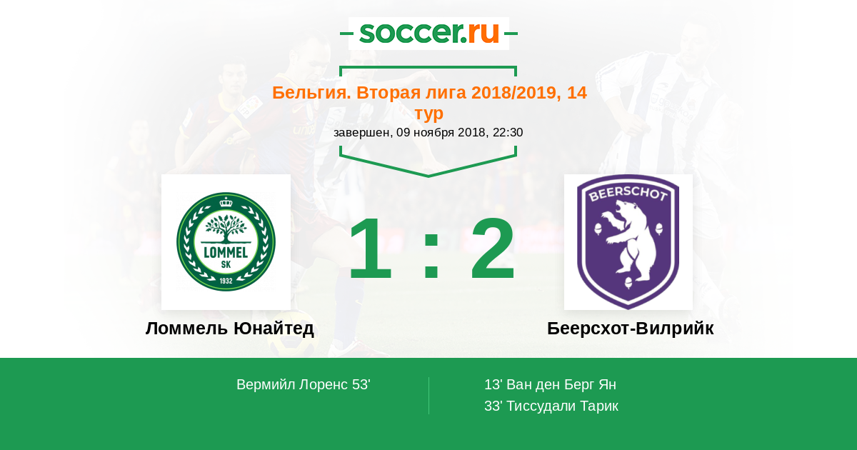Протокол матча Ломмель Юнайтед против Беерсхот-Вилрийк