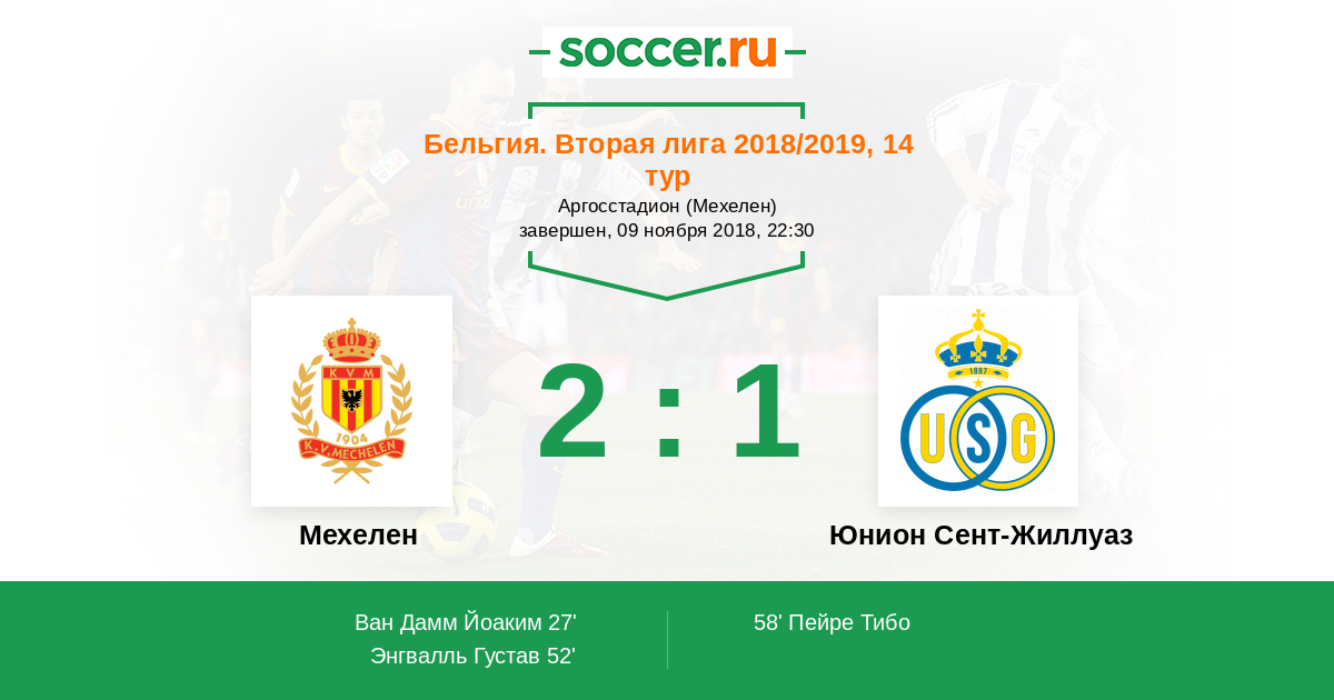 Протокол матча Мехелен против Юнион Сент-Жиллуаз