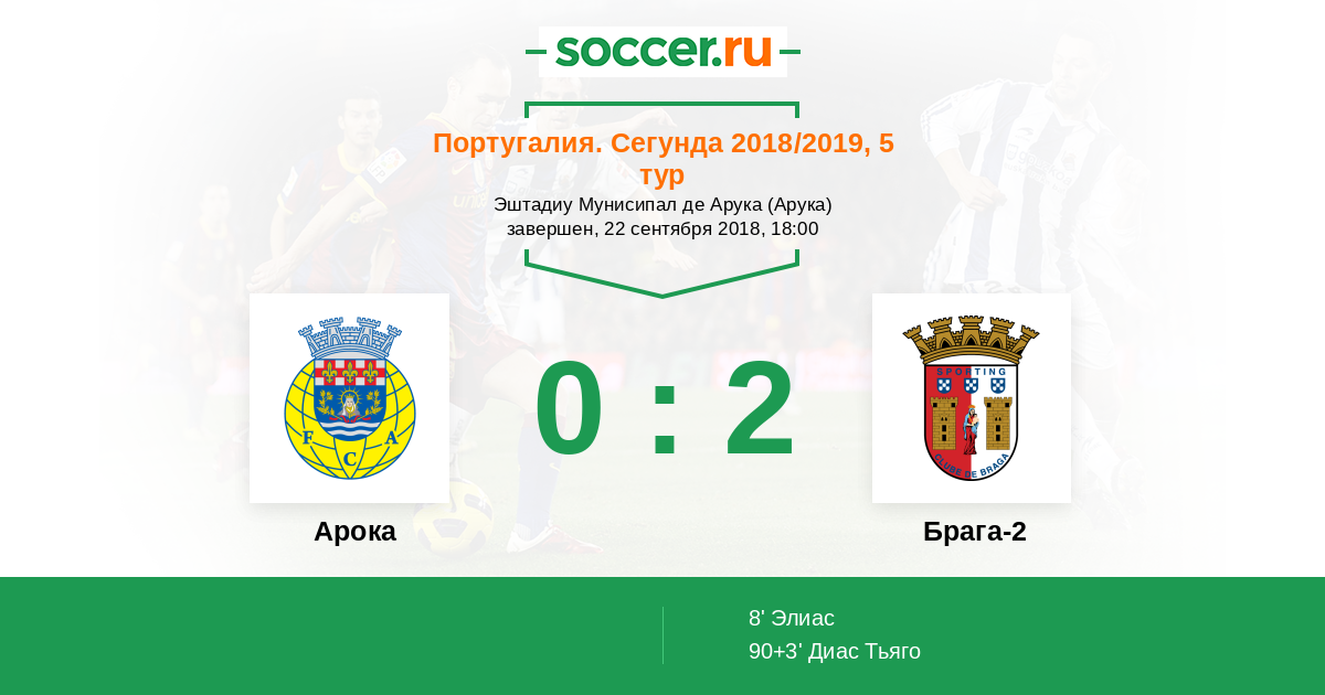 Протокол матча Арока против Брага-2