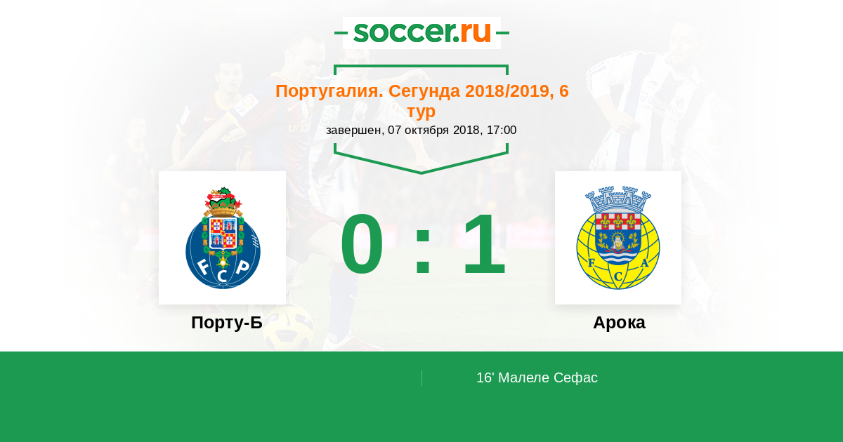 Протокол матча Порту-Б против Арока