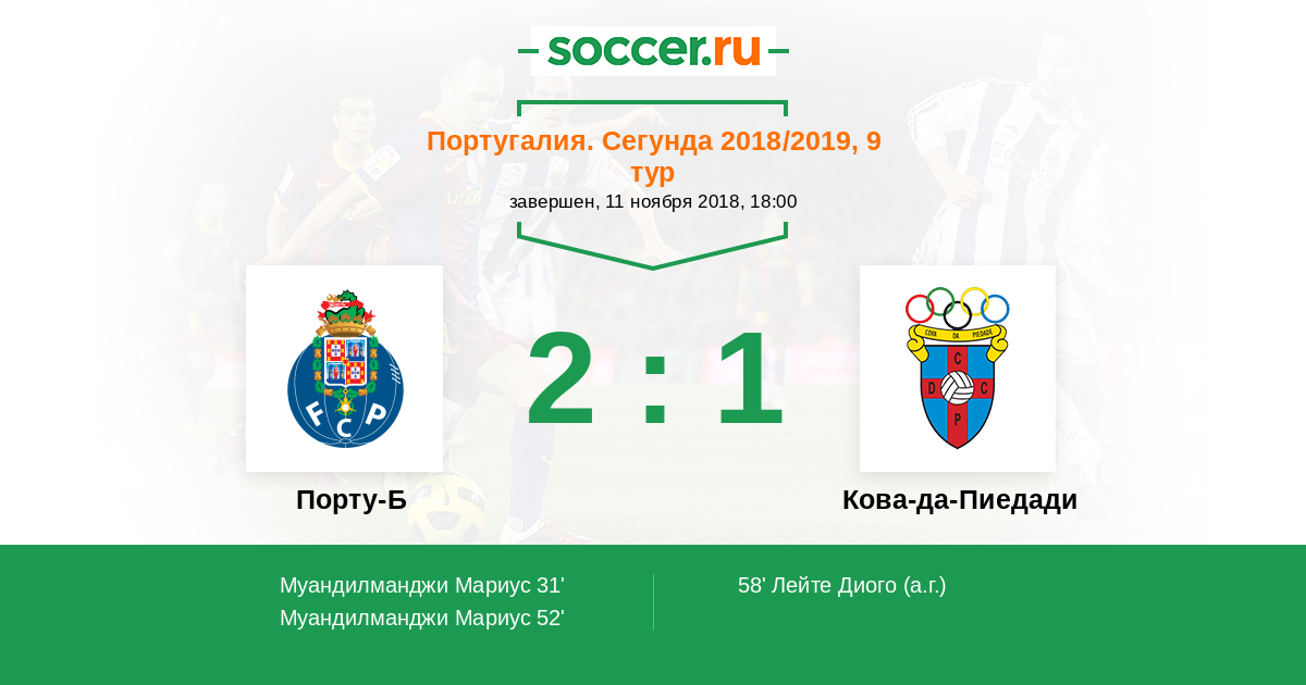 58' (2:1) Автогол Лейте Диого (4)