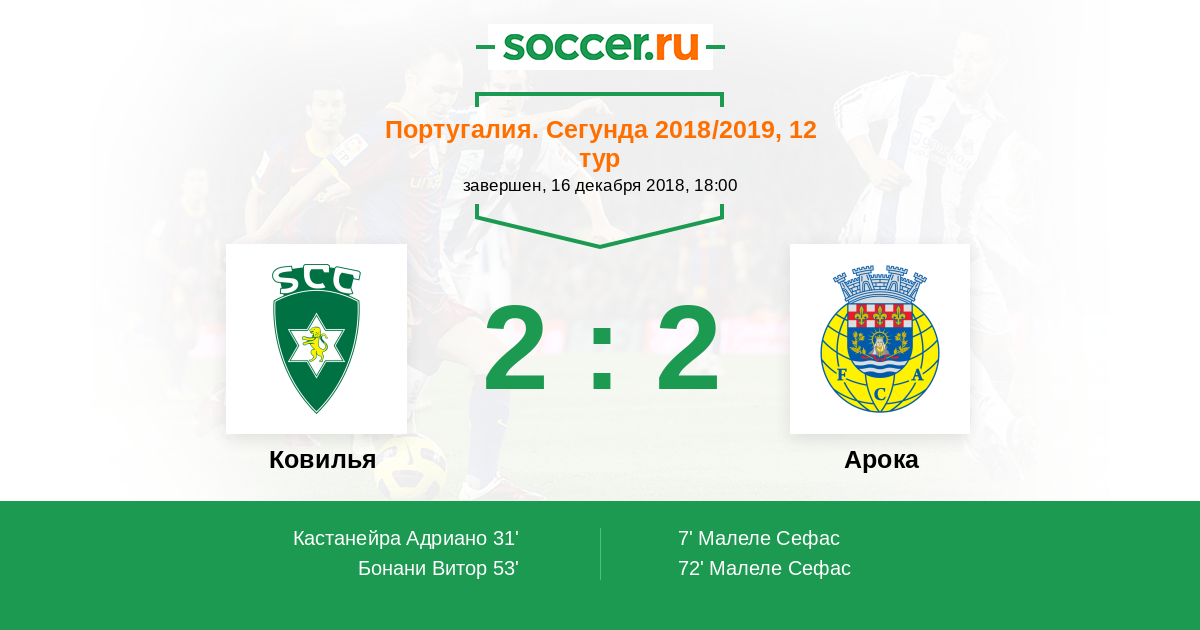 Протокол матча Ковилья против Арока