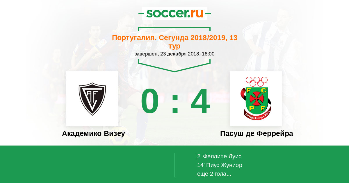 Протокол матча Академико Визеу против Пасуш де Феррейра