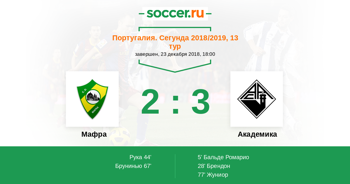 Протокол матча Мафра против Академика