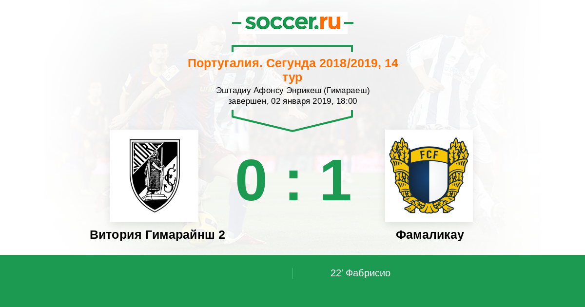 Протокол матча Витория Гимарайнш 2 против Фамаликау