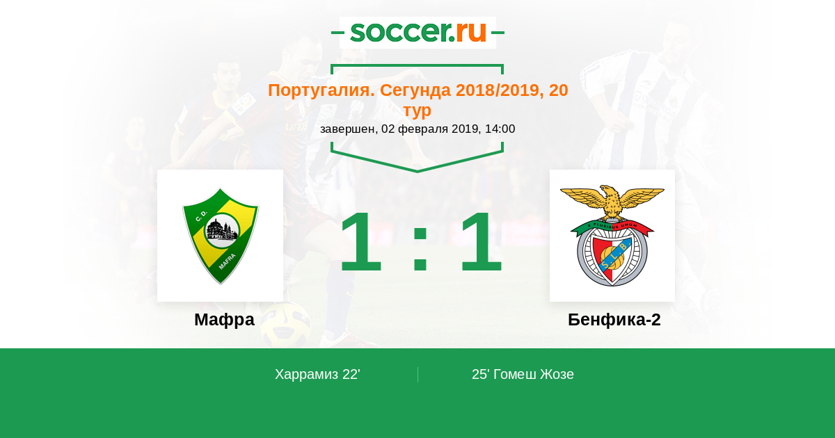 Протокол матча Мафра против Бенфика-2
