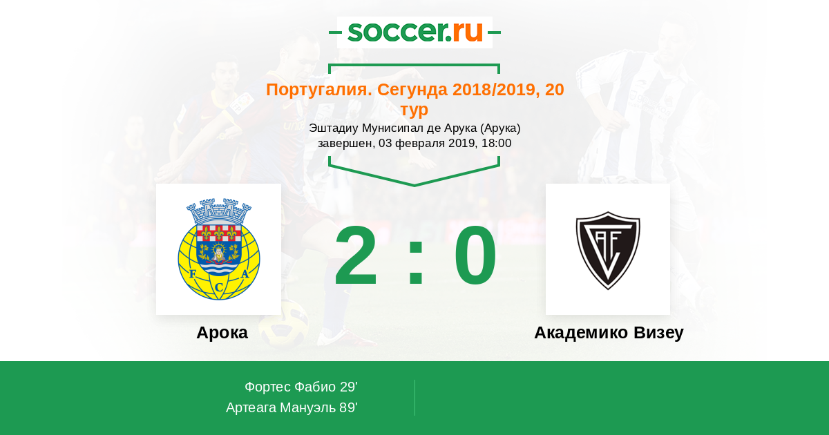 Протокол матча Арока против Академико Визеу