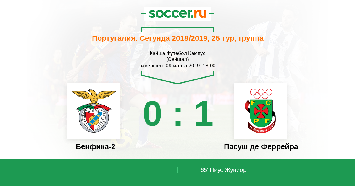 Протокол матча Бенфика-2 против Пасуш де Феррейра