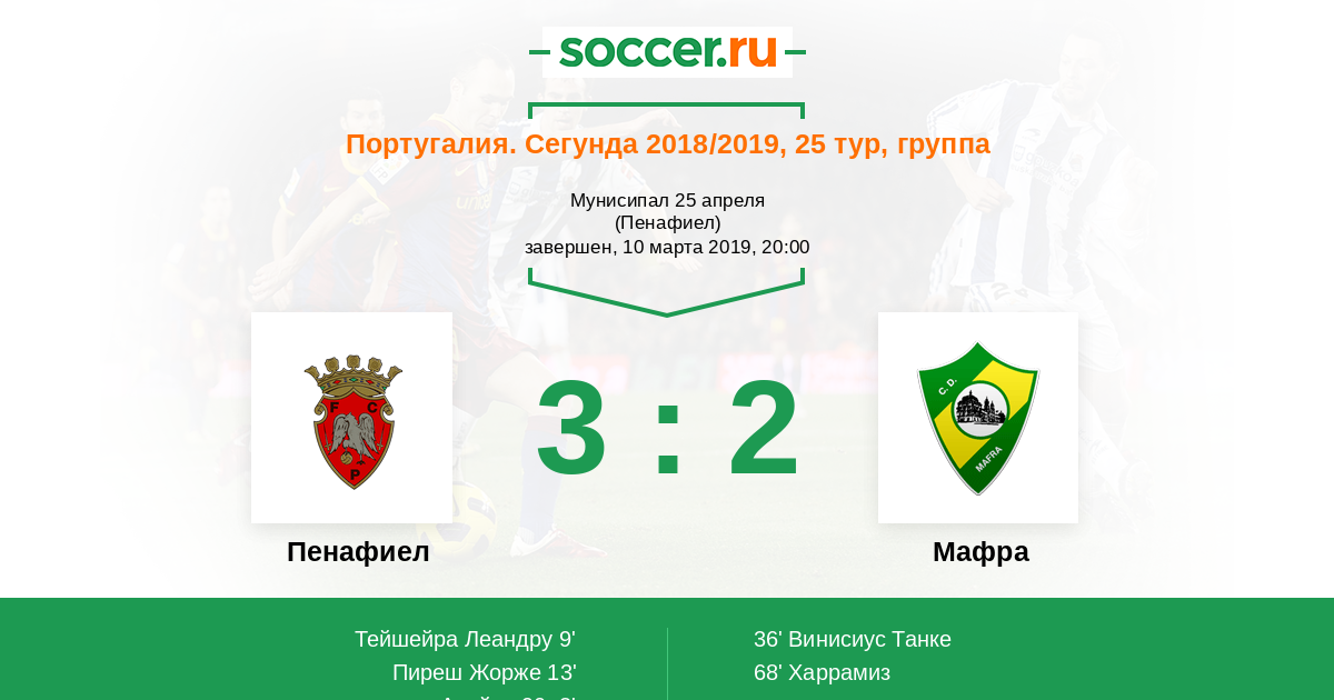 Протокол матча Пенафиел против Мафра