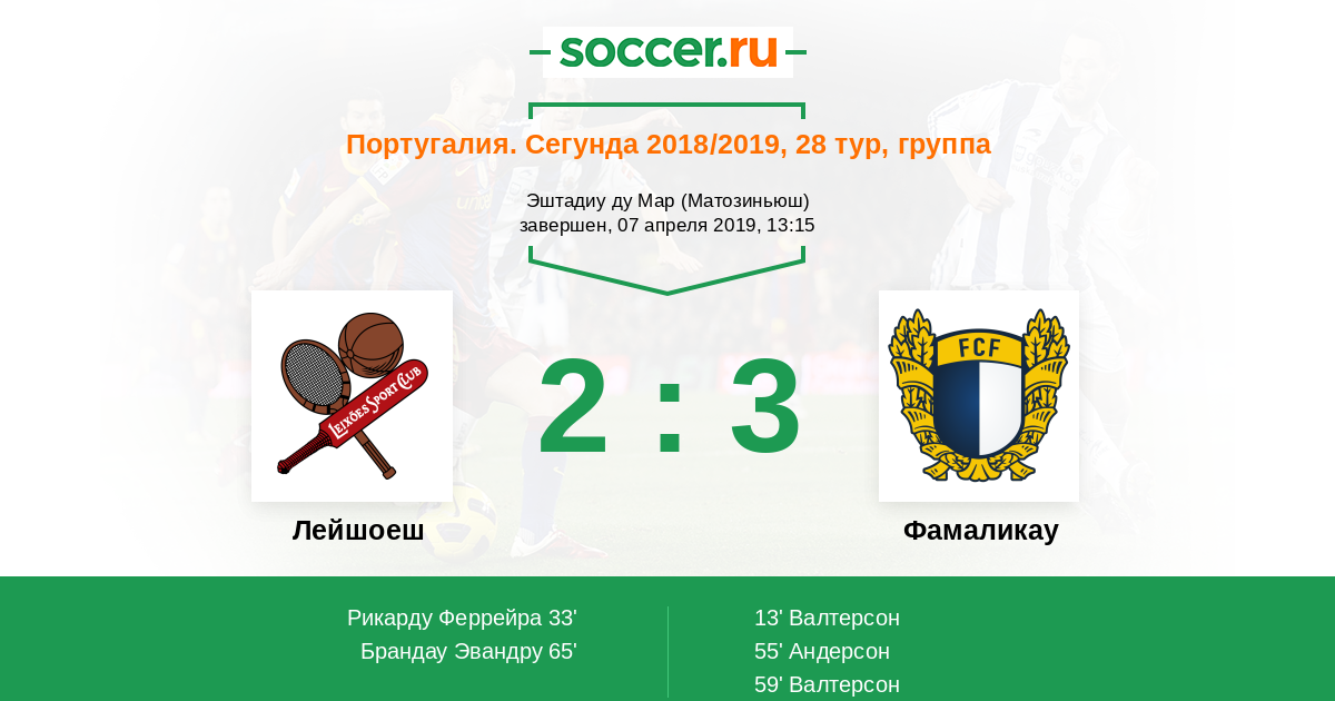 Протокол матча Лейшоеш против Фамаликау