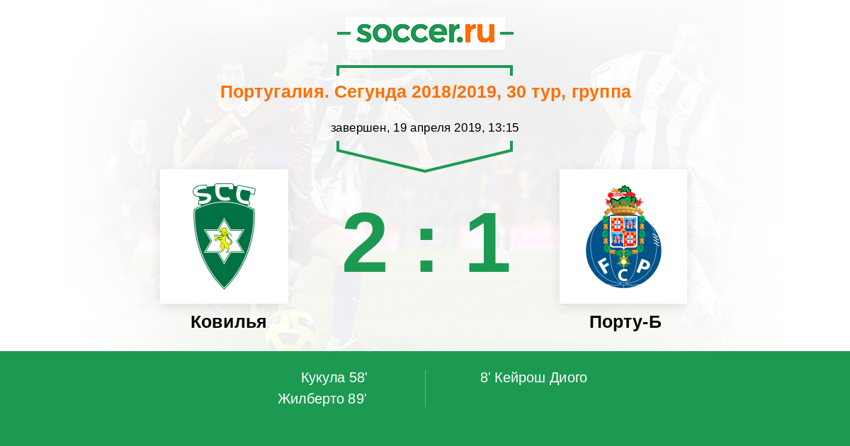 Протокол матча Ковилья против Порту-Б