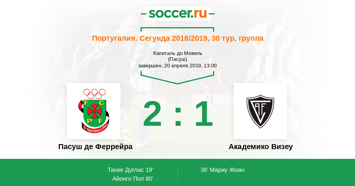 Протокол матча Пасуш де Феррейра против Академико Визеу