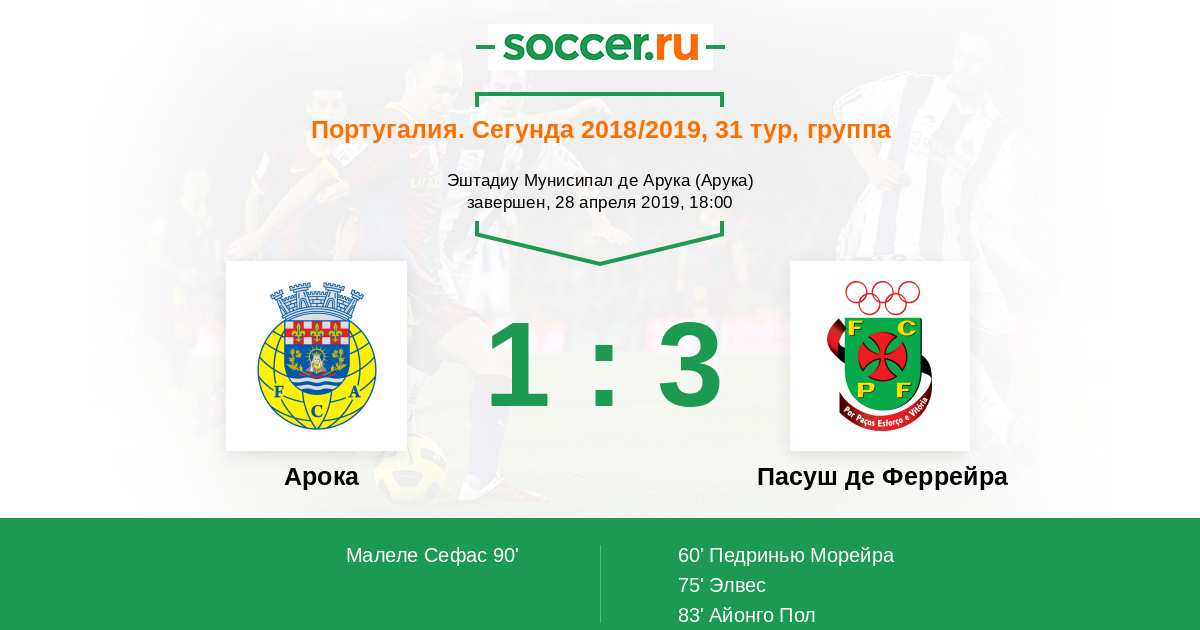 Протокол матча Арока против Пасуш де Феррейра