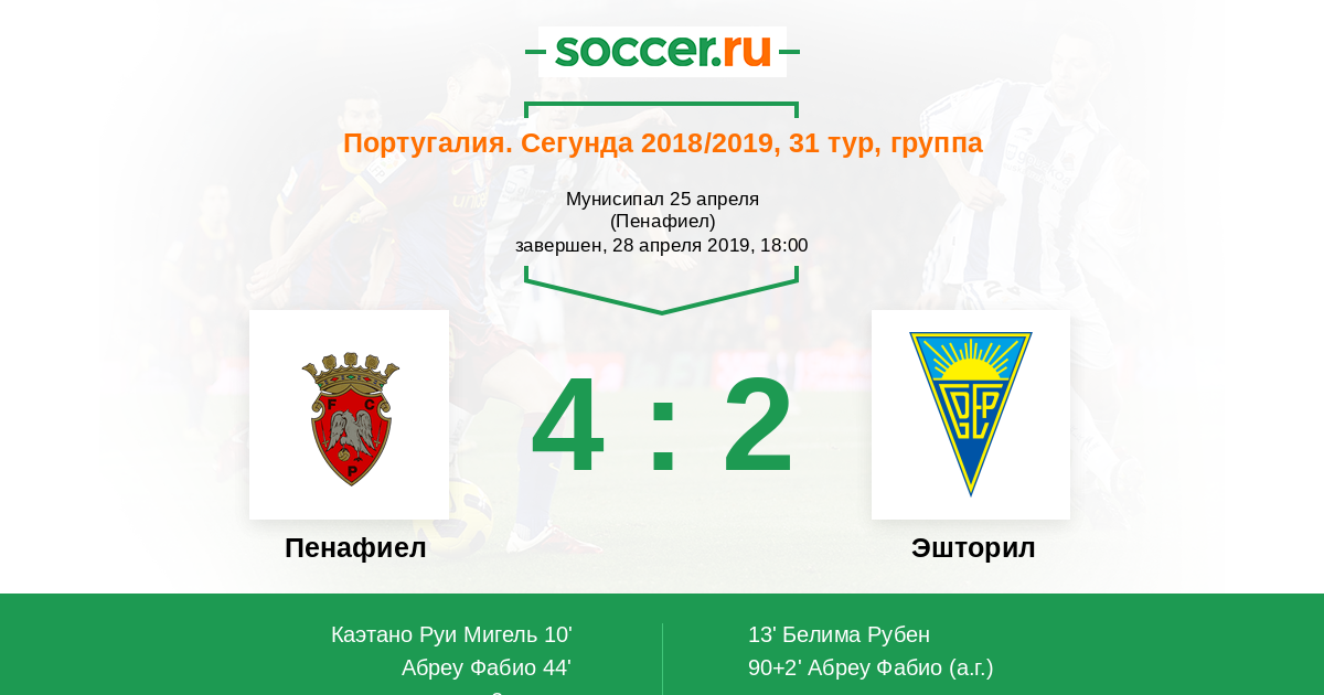 Протокол матча Пенафиел против Эшторил
