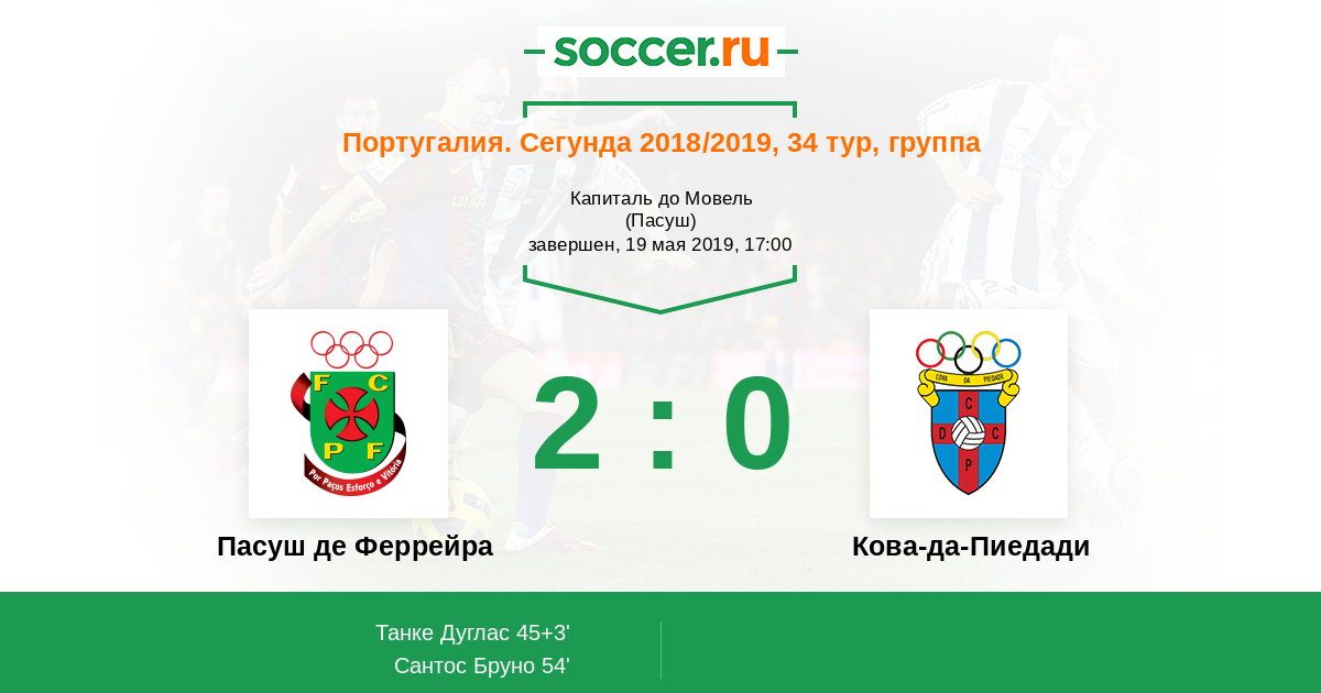 Протокол матча Пасуш де Феррейра против Кова-да-Пиедади